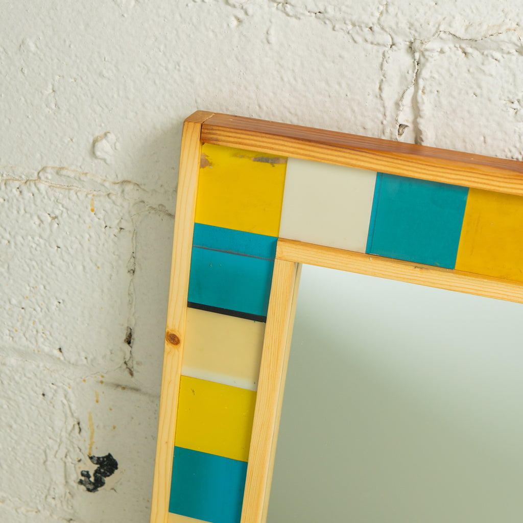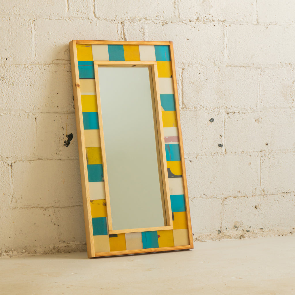 Crafted from remnants of Liquor Store signs we have salvaged in Detroit. We created these unique one-of-a-kind mosaic mirrors. Full of color and contrast, these mirrors are a fun pop of color to accent any room.