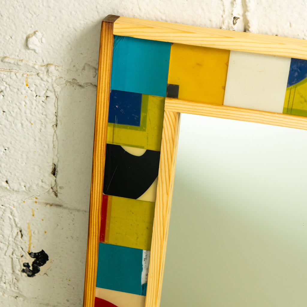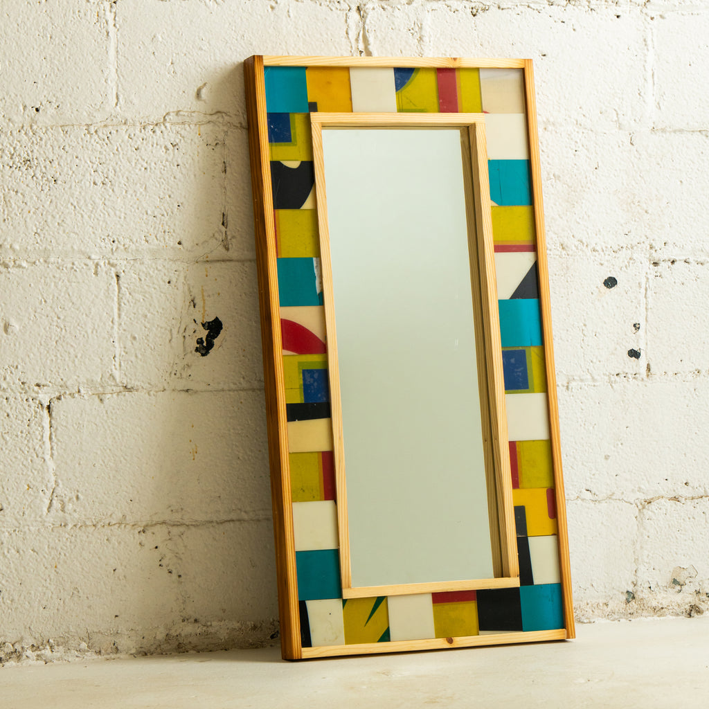 Crafted from remnants of Liquor Store signs we have salvaged in Detroit. We created these unique one-of-a-kind mosaic mirrors. Full of color and contrast, these mirrors are a fun pop of color to accent any room.