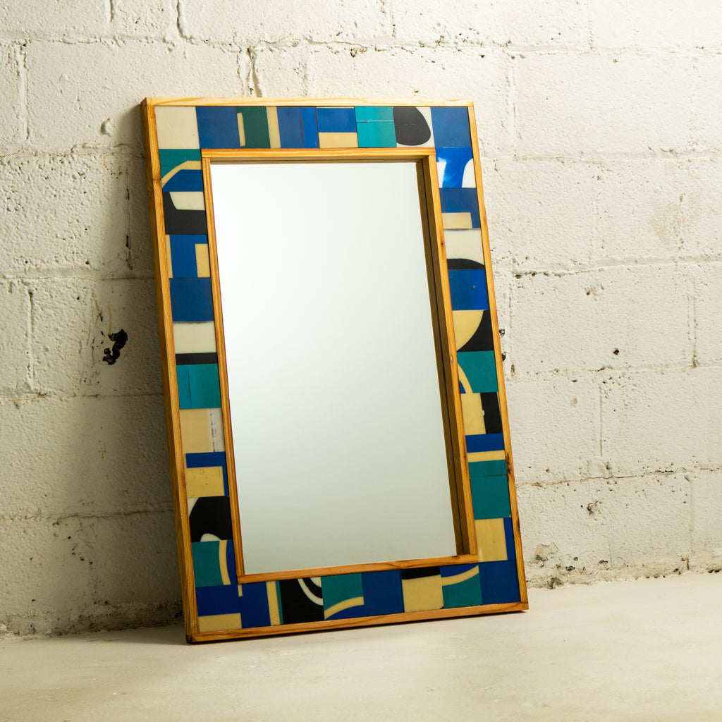 Crafted from remnants of Liquor Store signs we have salvaged in Detroit. We created these unique one-of-a-kind mosaic mirrors. Full of color and contrast, these mirrors are a fun pop of color to accent any room.