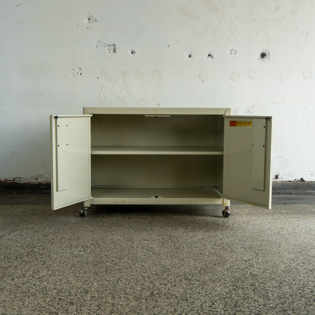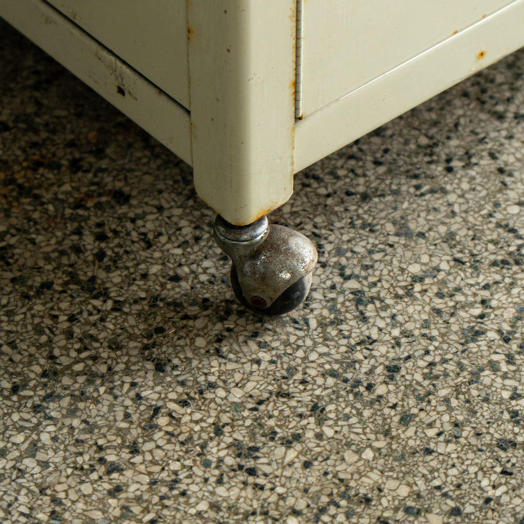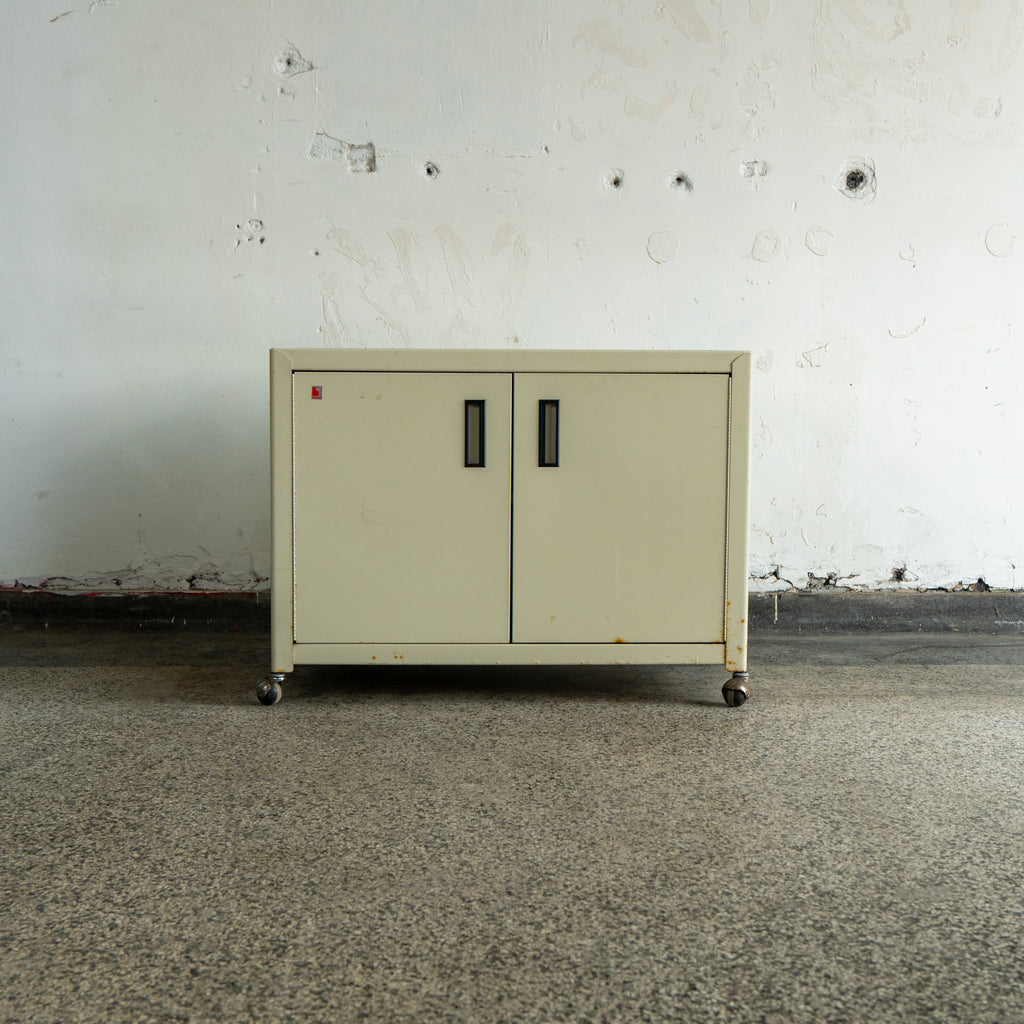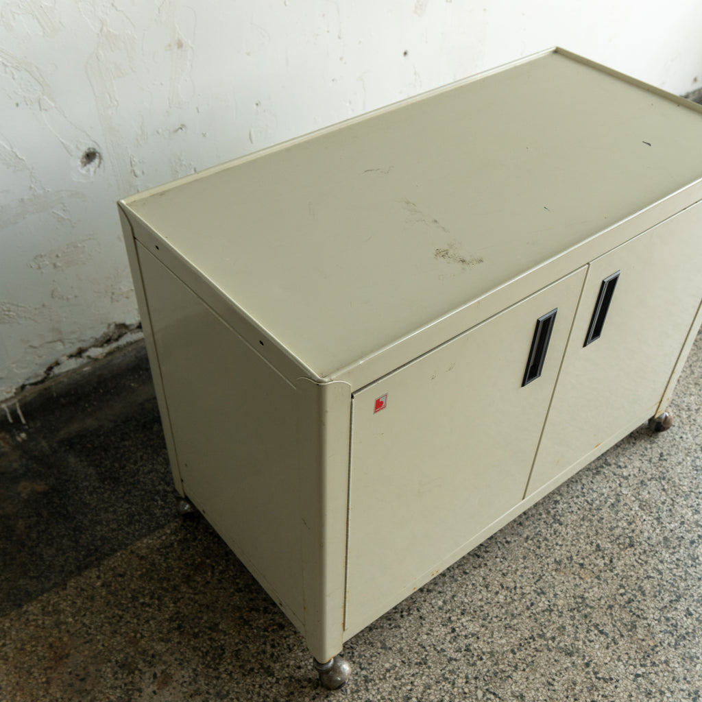 Art Deco style metal cabinet on wheels. Perfect storage cabinet for any room.