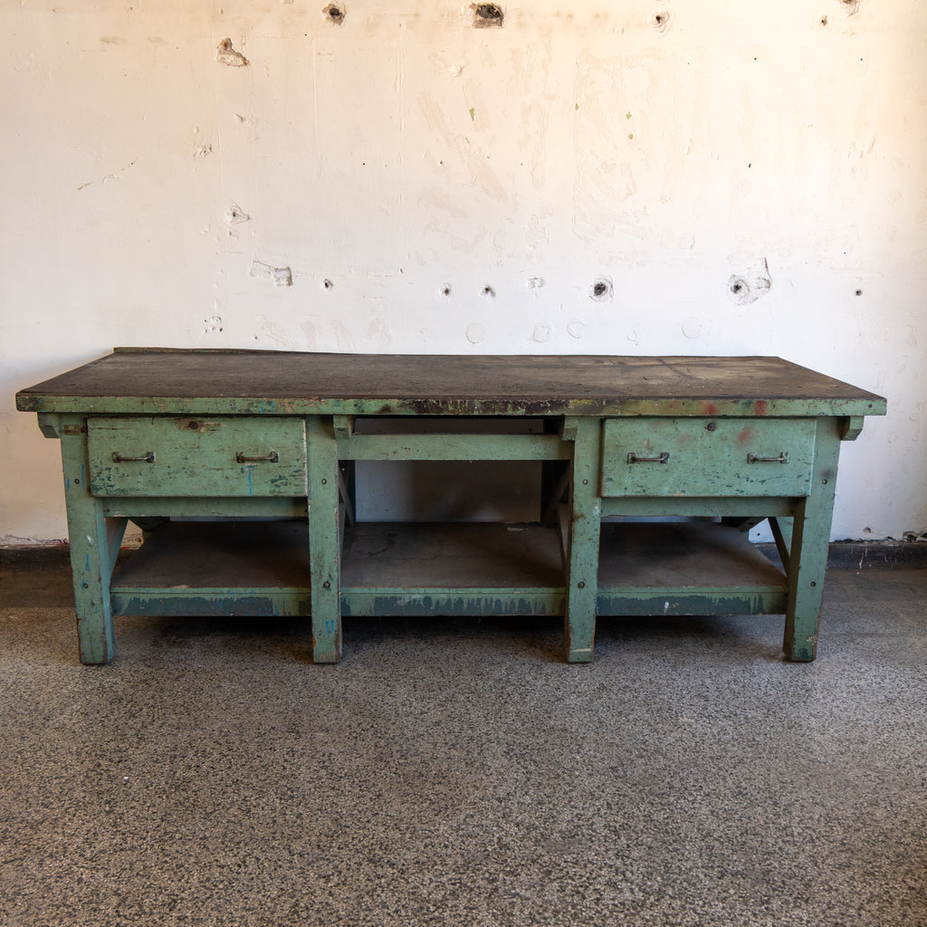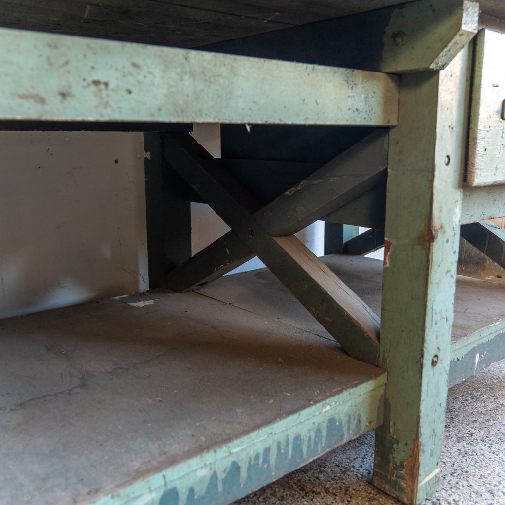 This beautiful work bench would make the most stunning kitchen island. Also would be an amazing display in a retail store. Come out of a local workshop, this handmade piece is very cool. The colors are amazing and the texture is unreal. Please contact us if you'd like us to alter this into a functional kitchen island.