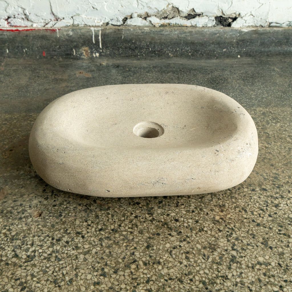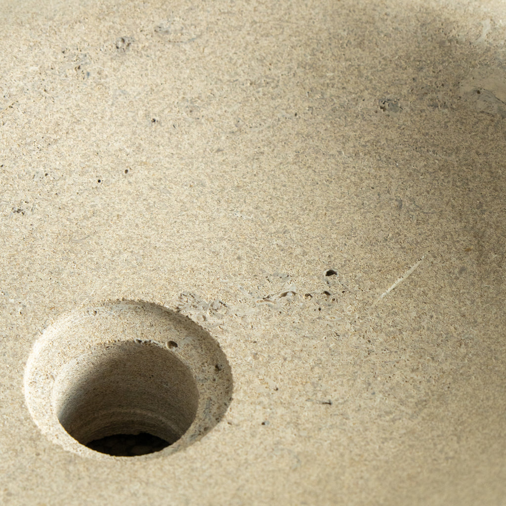 Carved into a modern rounded vessel and sealed with a stone sealer. Pre-drilled for easy faucet installation!