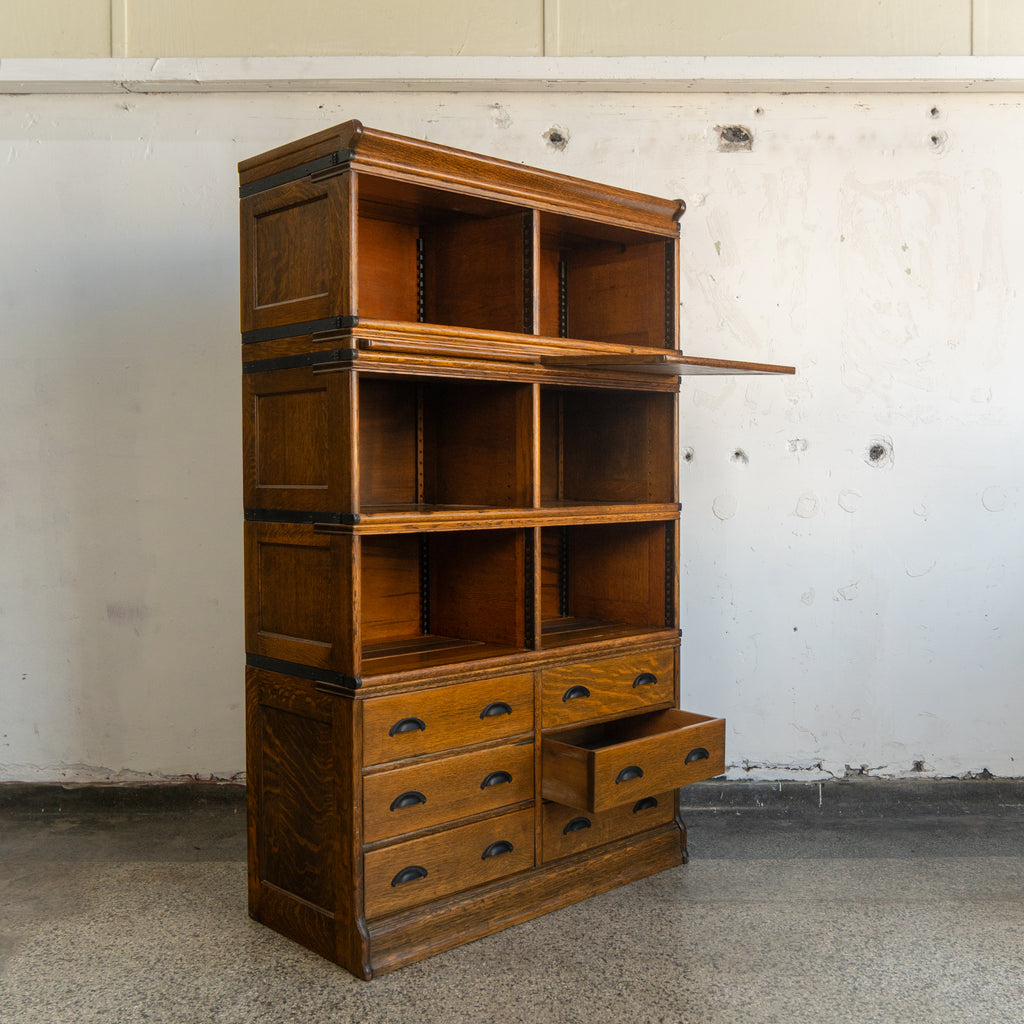 Oak barrister-style cabinet. Great addition to the office or home. Each section is stackable and can be reorganized as desired. In great vintage condition.