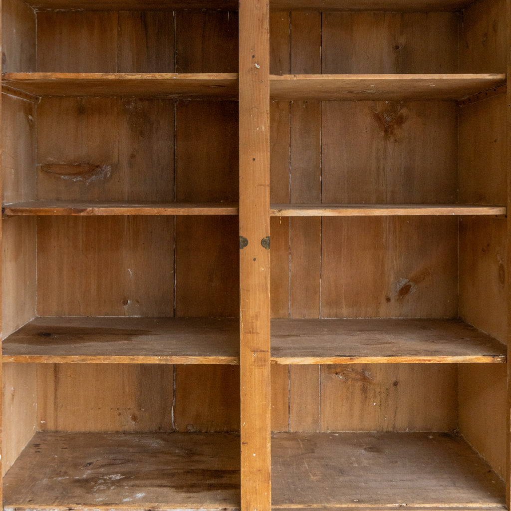 A wonderful 19th-century cabinet made from solid pine with beautifully aged surfaces, warmth and character. The upper cabinet features shelving while the bottom is completely open for easy access and extra storage.